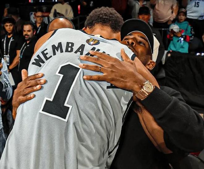 要加盟马刺吗?保罗现场观看马刺战雷霆,和文班亚马热情拥抱!